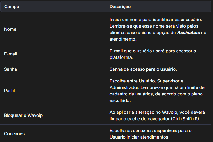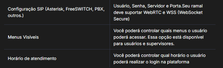 Em Conexões você define qual a conexão o usuário poderá iniciar um atendimento.