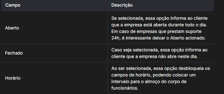 Os feriados são dias que o estabelecimento não está aberto. Esses dias serão considerados como dias fechados.