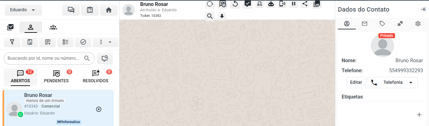 Ao clicar no botão ligar, uma chamada será realizada para o contato.