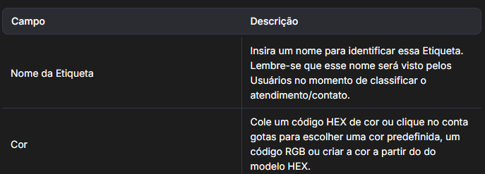 As etiquetas são uma ferramenta que auxilia na classificação dos atendimentos e/ou contatos. Ou seja, você pode criar quantas etiquetas forem necessárias para organizar visualmente os seus atendimentos.
