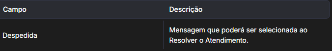 Nova Mensagem de Fechamento