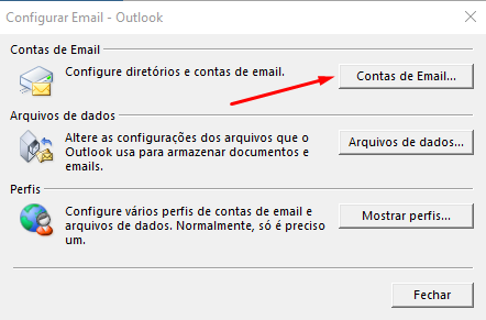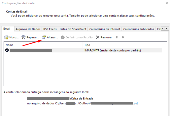 Por fim, clique uma vez em cima do e-mail configurado e clique em Alterar.