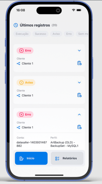- Relatórios técnicos detalhados: Consulte logs de execução e históricos de backup.