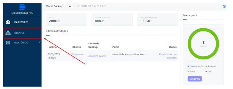 Passo 2: Selecione o cliente que está com a conta de backup na qual você deseja realizar a migração da máquina antiga para a nova máquina