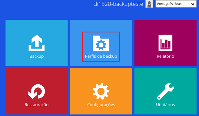 Uma das opções para diminuir o espaço alocado é por meio da alteração do tempo de retenção do perfil de backup. Para realizar esta ação, acesse a ferramenta de backup e em seguida selecione a opção “Perfis de backup”.