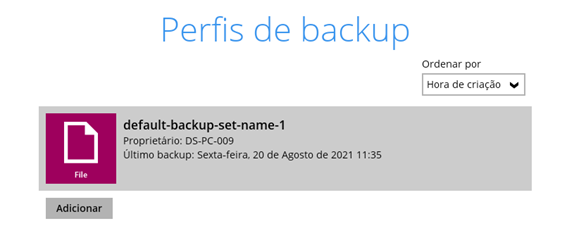 Passo 1: Para realizar a configuração, na ferramenta de Backup, acesse a opção “Perfis de backup”: