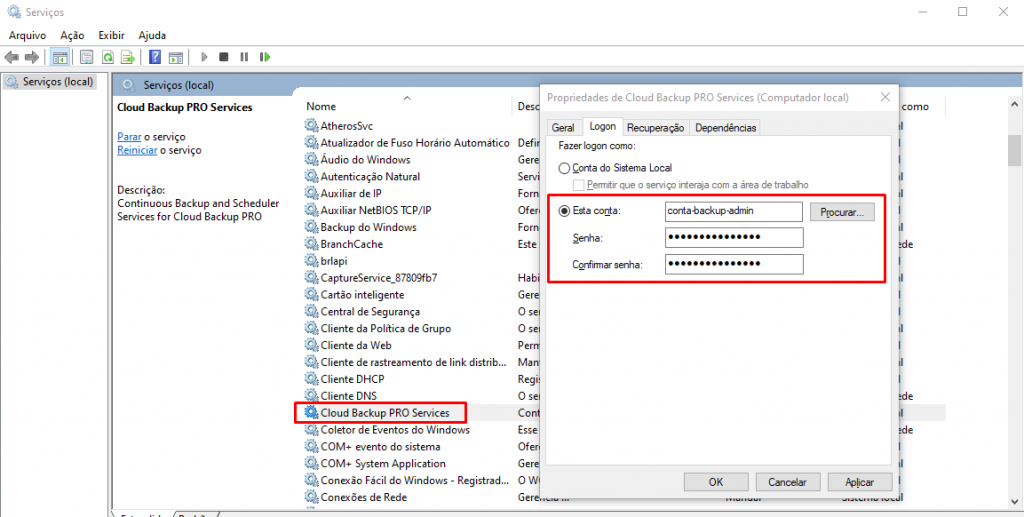 Verifique se a senha do administrador do Windows foi alterada recentemente, caso tenha sido, será necessário inserir a nova senha na autenticação Windows do software de backup e no serviço de agendamento.