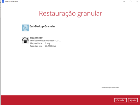 Após selecionar a pasta temporária e clicar em restauração, a fermenta irá montar em seu servidor uma unidade (OpenDirect (X:)) de rede com os discos (RAW) da máquina selecionada.