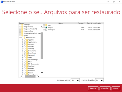 Passo 10: Escolha a pasta de destino e clique em restauração.