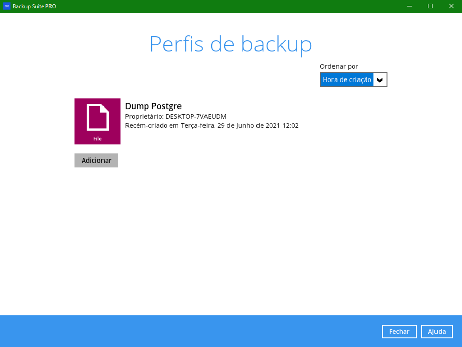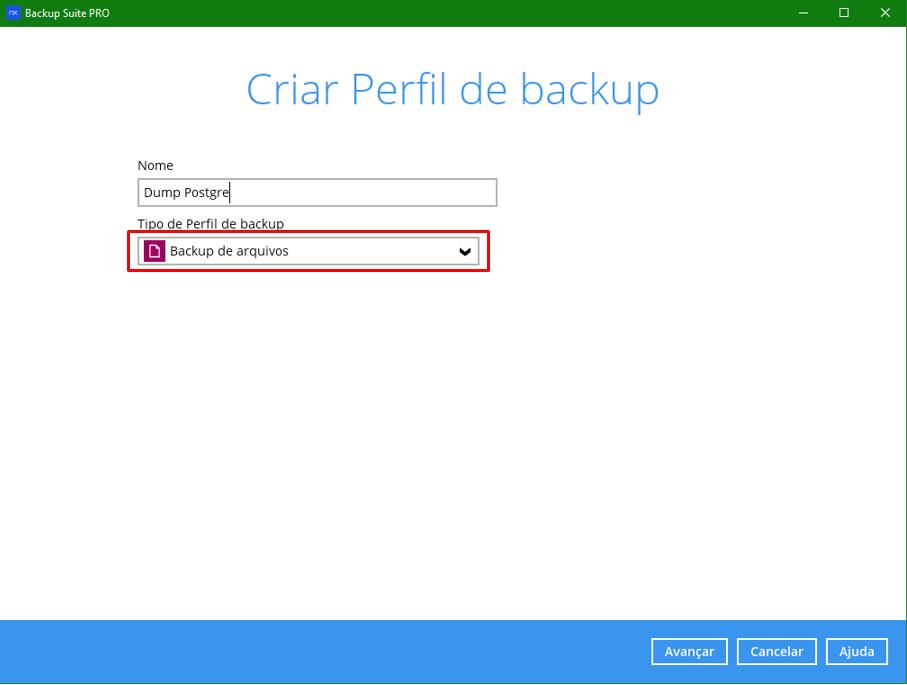 4. Crie o perfil de backup como “Backup de Arquivos”.