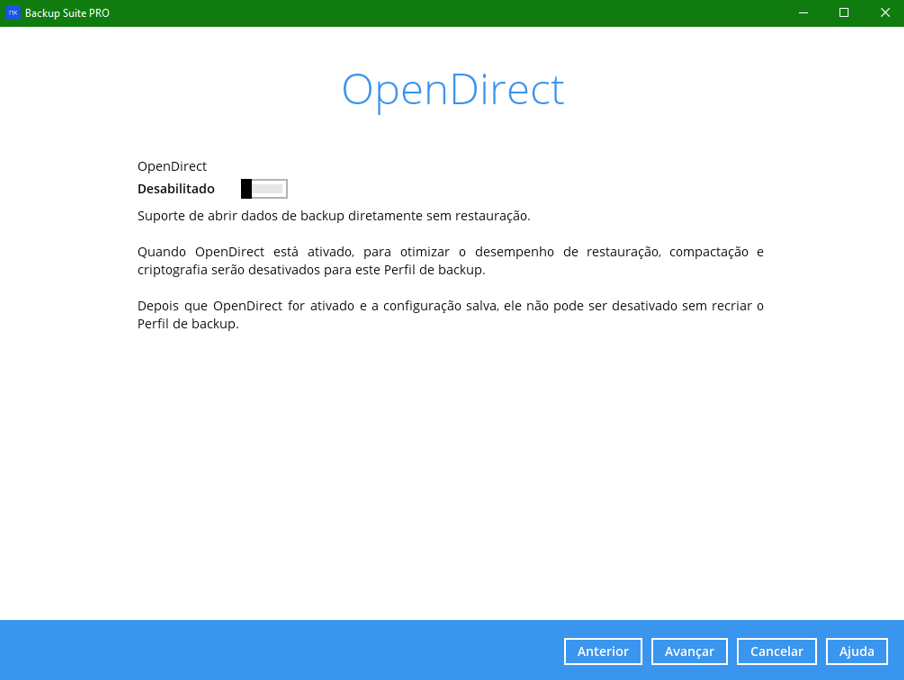 8. Por padrão, deixe desabilitado a opção de OpenDirect.