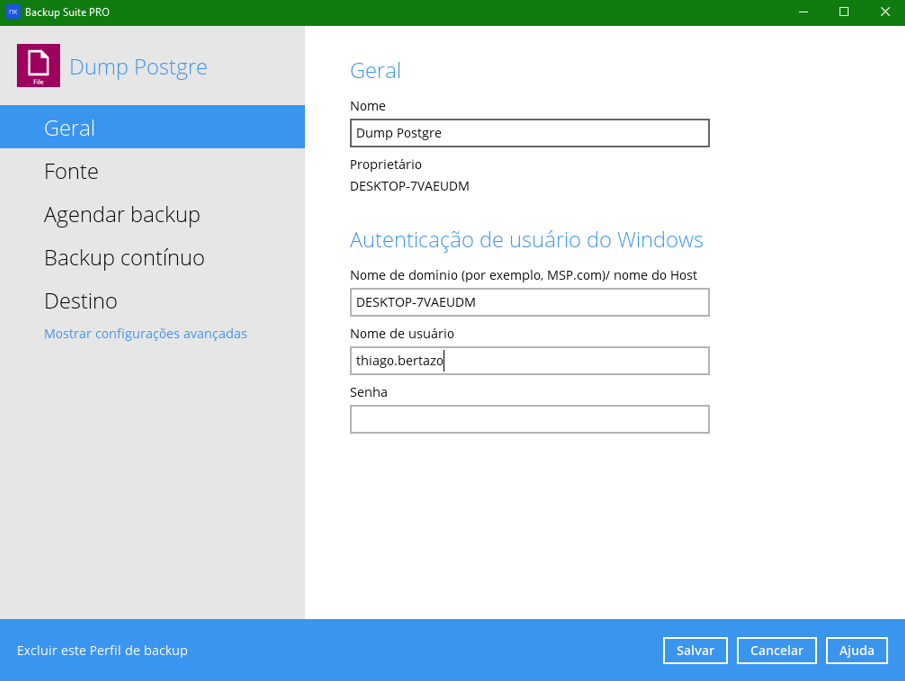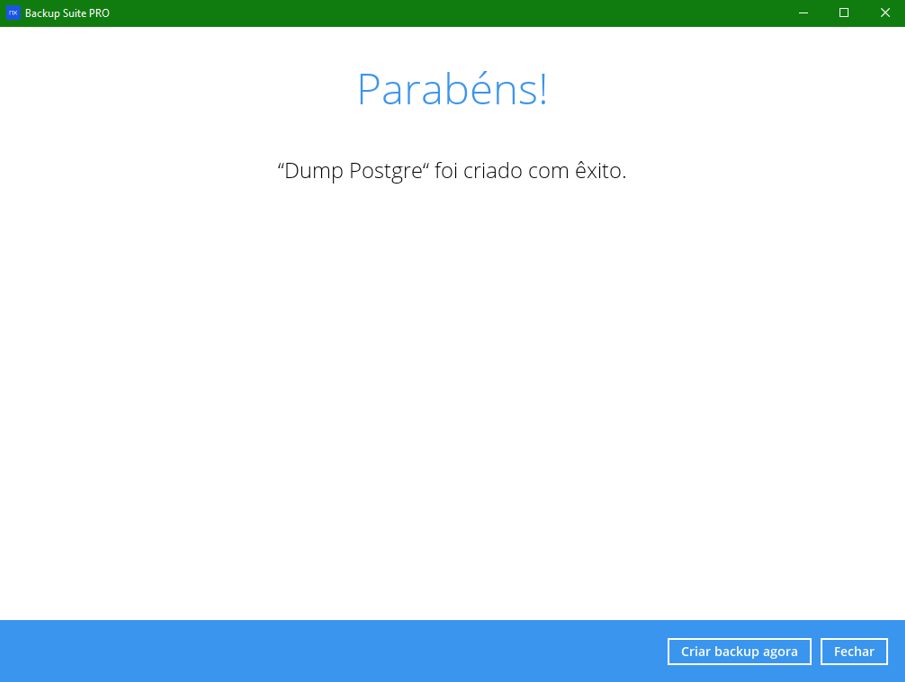 O MF Backup possibilita a configuração de backup para diversos bancos de dados, dentre eles o PostgreSQL.