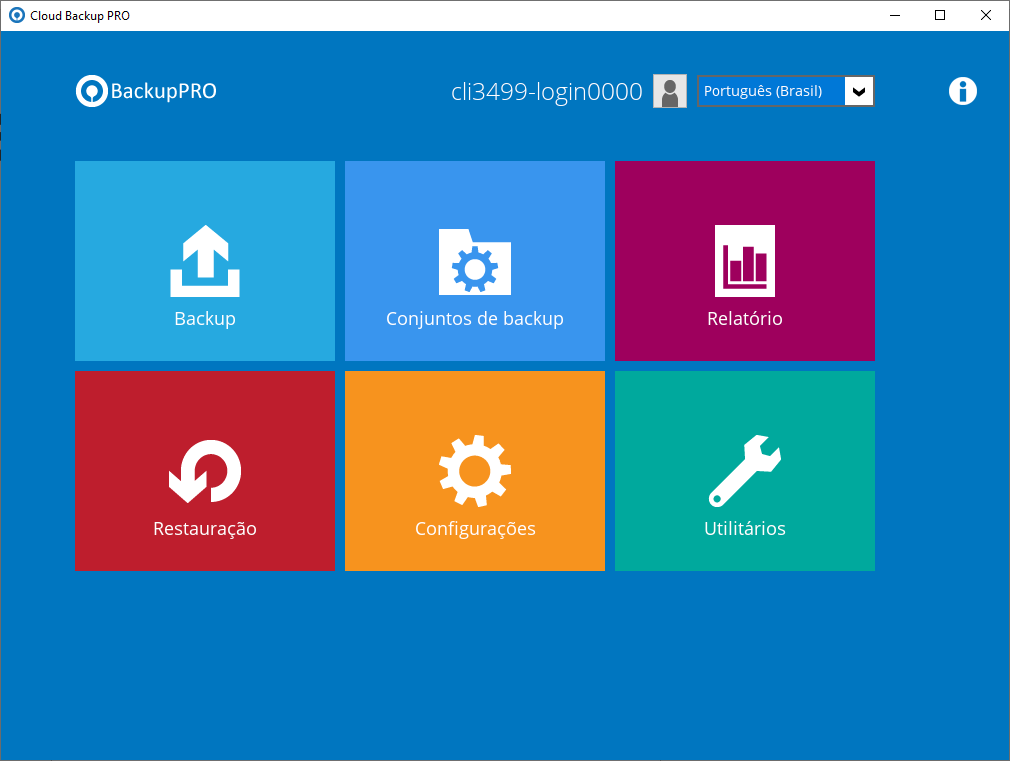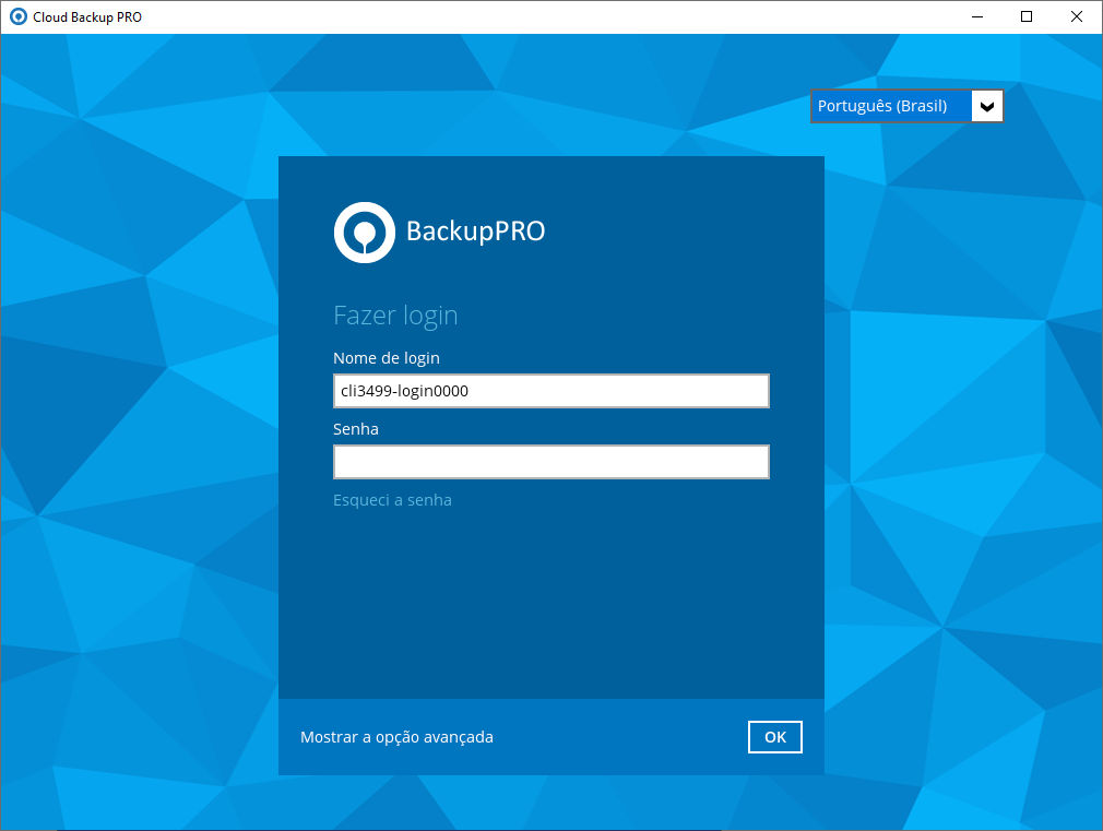 Passo 1 – Faça o login da ferramenta de backup: