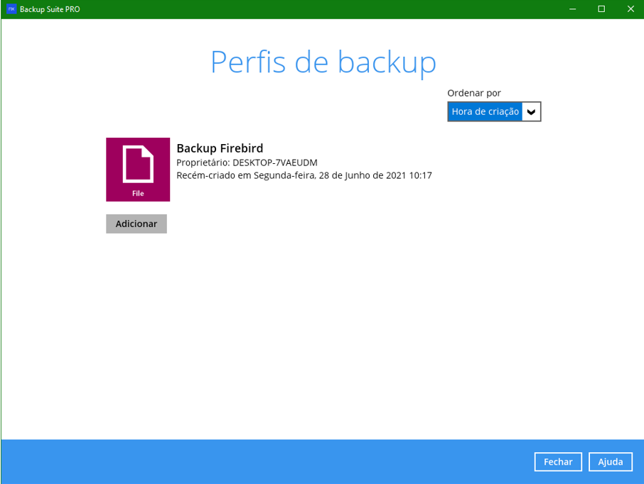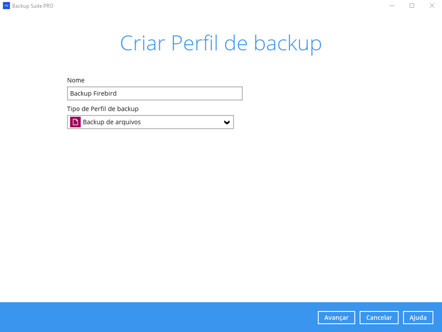 Passo 3 – Crie o perfil de backup como “Backup de arquivos”: