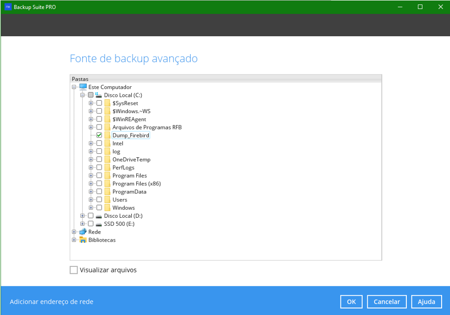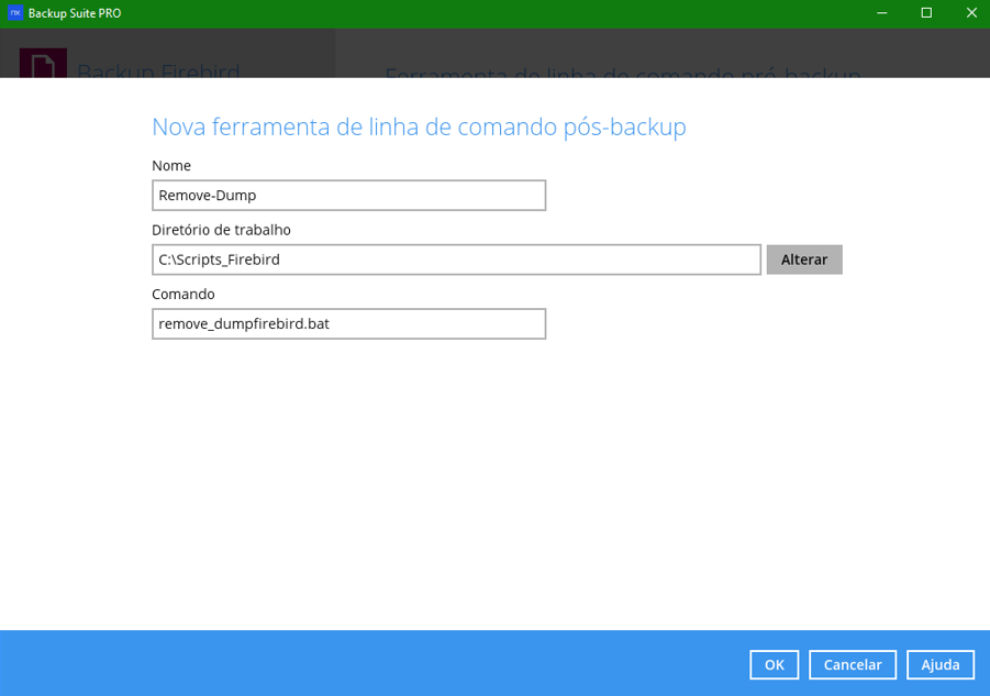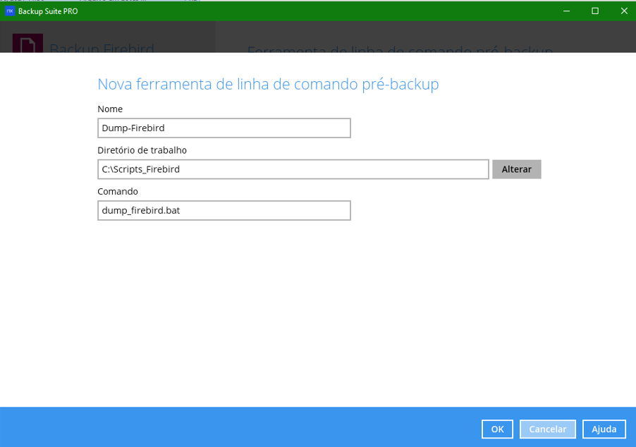 Em nosso exemplo, o script de pré-comando procura a pasta C:\Dump_Firebird.