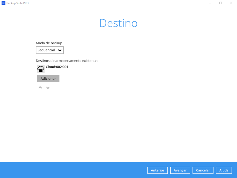 Passo 6 – Defina o destino em que o backup será armazenado: