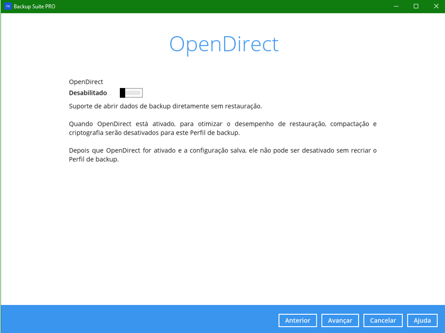 Passo 7 – Por padrão, deixe desabilitado a opção de OpenDirect:
