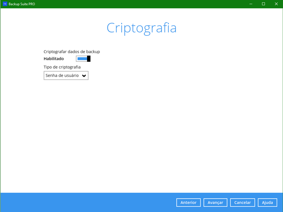Passo 8 – Defina a chave de criptografia para a rotina, caso selecione “Senha do usuário” será configurado a mesma senha conta de backup: