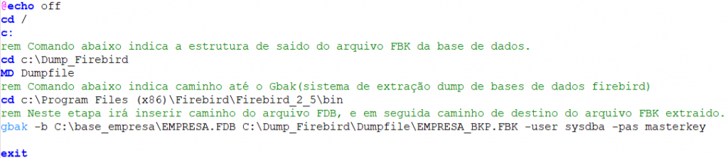 Após extrair os arquivos, edite o arquivo dump_firebird.bat