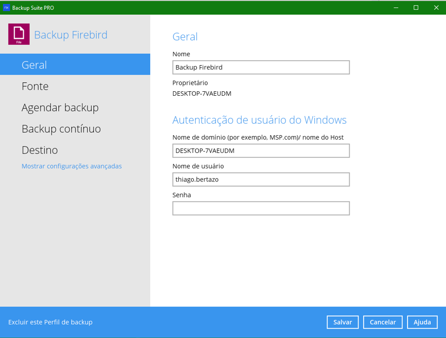 Passo 16 – Salve e execute o backup.