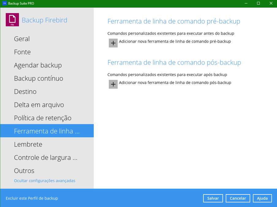 O backup de firebird é feito utilizando um script de pré e pós-comando, conforme os passos abaixo.