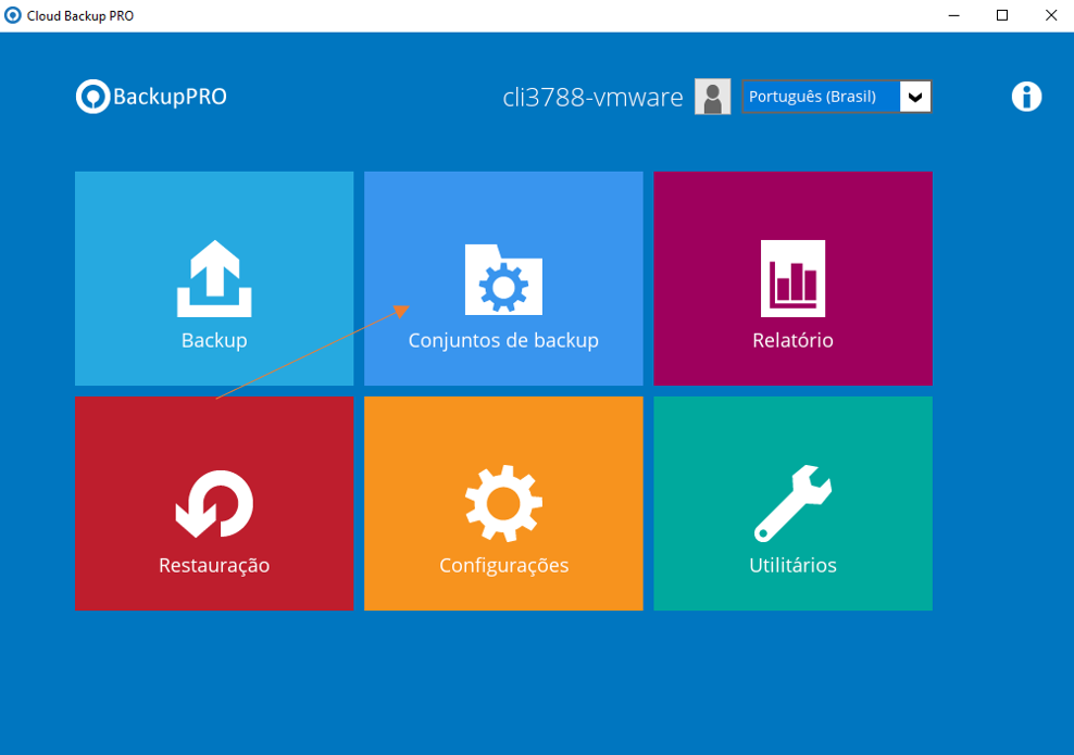 Passo 2: Acesse a opção “Conjuntos de Backup”: