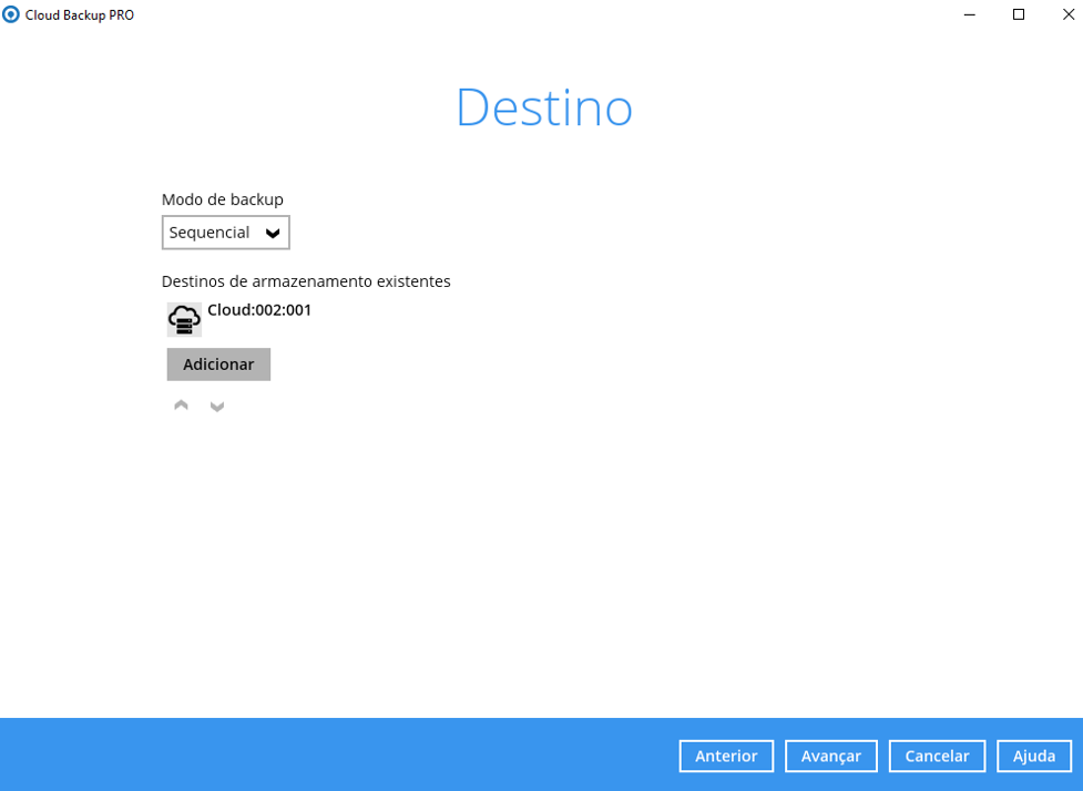 Passo 7: Configure o(s) destino(s) do seu backup:
