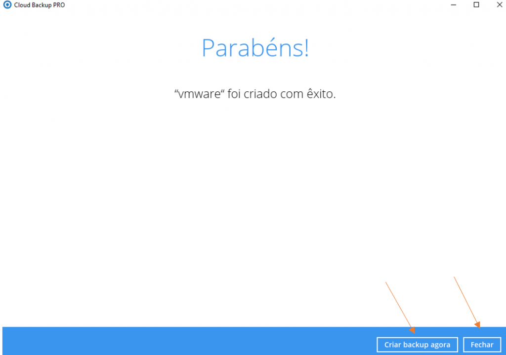 Passo 9: A configuração de backup foi finalizada, clique em “Criar backup agora”, caso queira iniciar o primeiro backup ou em “Fechar, caso prefira aguardar os agendamentos: