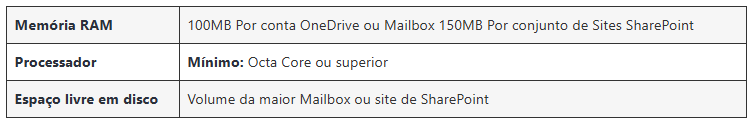 Este tipo de backup é necessário existir uma máquina para executá-lo, para executar o backup do Microsoft 365, é importante que a máquina atenda as especificações abaixo.