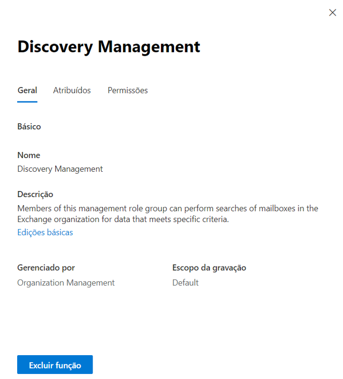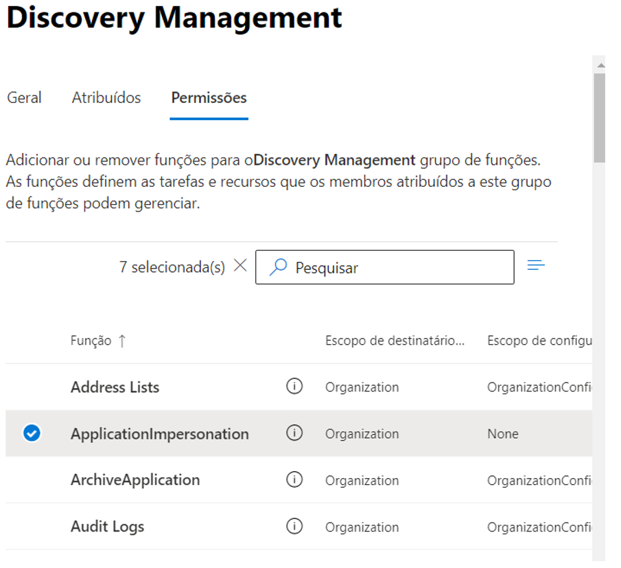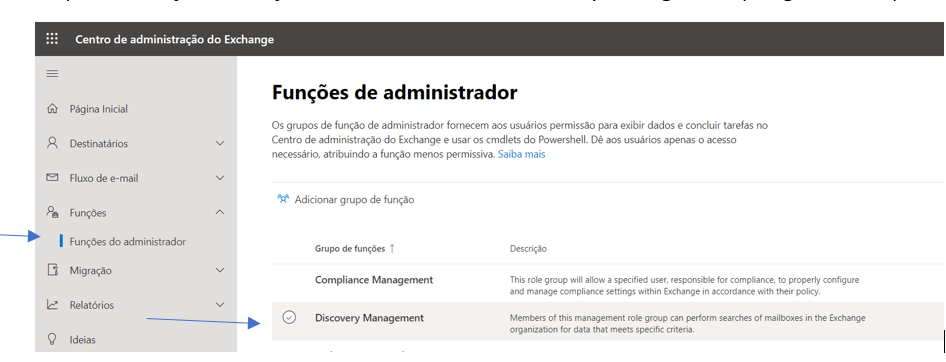 Clique em Funções > Funções de administrador > Discovery Management (imagem abaixo).