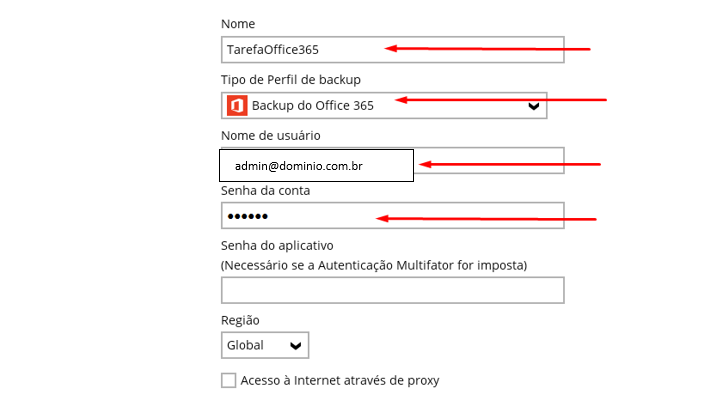 Para ser possível fazer backup de diversas caixas de e-mail, será necessário autenticar na ferramenta de backup utilizando uma conta do Microsoft 365 com perfil de administrador.