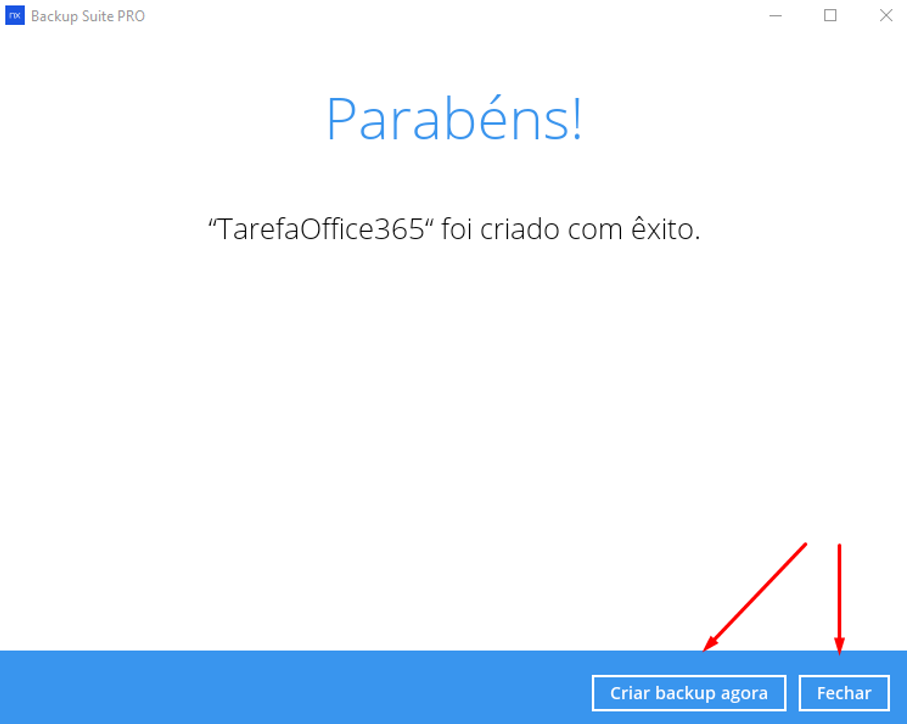 Clique em fechar ou criar backup agora para iniciar o backup.