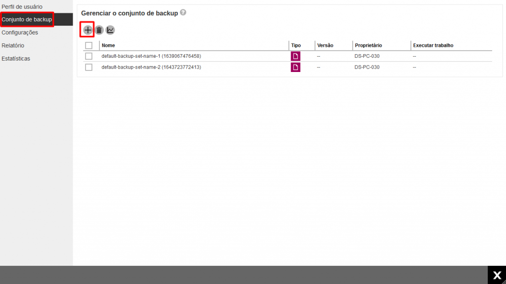 5 – Em seguida clique em “Conjunto de Backups” e depois no ícone “+”: