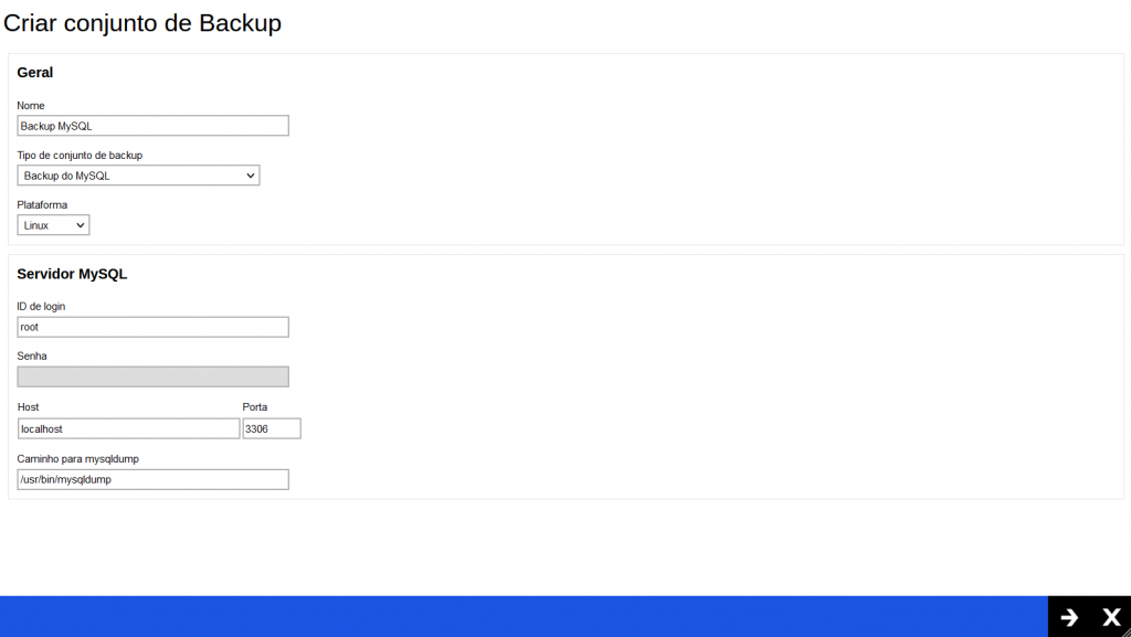 Configurando o backup para MySQL