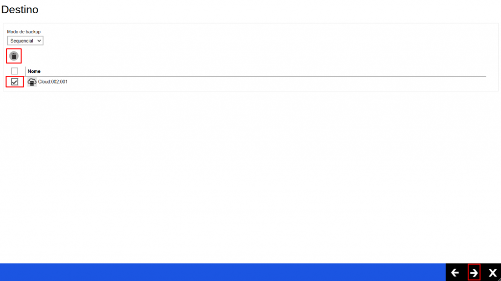 10 – Na área do destino, exclua a nuvem existente (será adicionada posteriormente). Selecione a nuvem, e clique na lixeira, em seguida clique em avançar: