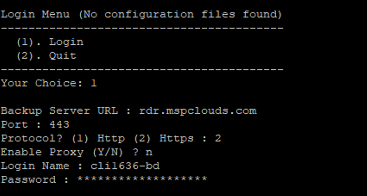 14 – Ao logar na ferramenta, aparecerá a mensagem informando o nome do “backup set” criado anteriormente, conforme imagem abaixo: