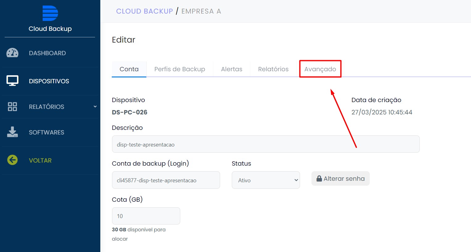 3 – Você será direcionado para o portal avançado, digite o nome de login e senha que são os mesmos da conta de backup que você está administrando. Em seguida clique em “Login”: